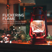 This is one of the coolest little lanterns we have seen! It's got a great rustic look, and puts out a lot of light. The simulated flame on the bottom flickers, providing a warm and realistic look. It has LED's hidden in the top of the lamp, that helps produce a bright and warm glow. The on/off switch also works as a dial to brighten or soften the light output.