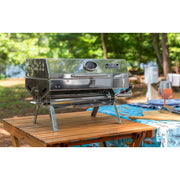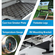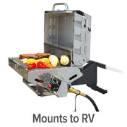 The Olympian 5500 Premium Stainless-Steel Portable RV Gas Grill is designed for RV and outdoor use and is easy to transport.
