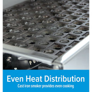 - Even Heat Distribution: Cast iron smoker provides even cooking