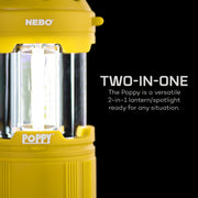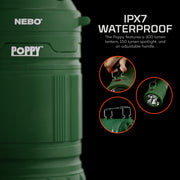 Poppy is a combination 300 lumen C•O•B LED lantern and bright LED spot light.  Poppy is the perfect light for indoor or outdoor use when versatility and powerful lighting are critical.  With a rubberized impact-resistant body, Poppy is both rugged and soft to the touch.  Poppy easily changes from spot light to lantern with just a slide of its top, revealing a full 360º C•O•B lantern.  The handle is designed to easily adjust to conveniently serve both light modes.
