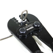 This heavy duty swaging tool makes the job of installing lift cables much easier. It features the ability to cut aircraft grade cables up to 1/8 of an inch, and crimps oval copper and aluminum sleeves. The multi cavity grooves work from 3/64" to 1/8".