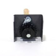 This chain drive crank system is commonly located behind a rear body panel. This is the compression system and ratchet upper crank. When you turn the crank handle to the right, the brake engages within this unit. A chain then drives the lower lift and the roof raises.