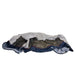 Off white canvas with a maroon vinyl border and navy trim.
